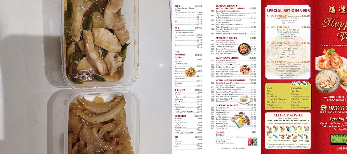 Discover Happy Valley Chinese Takeaway in Eaton Bray, where you'll find delicious fish and chips, crispy duck, flavorful chicken balls, and mouth-watering batter. Enjoy affordable prices on your favorite dishes. Visit us today at 64 High St, Dunstable LU6 2DP or call +44 1525 221552!